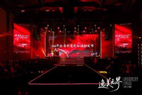 活动启动仪式以“艺”破局,构建全感官营销场景。开场的《痕记・流动的烟火》热场环节中,“货郎担”穿梭于人群,非遗产品展示、体验与销售融为一体,实现“第一眼吸引”到“即时性消费”的快速转化。随后,《绎新・非遗的诗学》时尚大秀颠覆传统认知——平遥推光漆器化作潮流首饰,上党堆锦变身高定礼服,数十项非遗技艺通过模特秀演打破刻板印象,适配年轻群体审美传播。