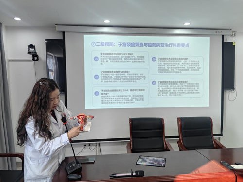 活动中,奉化区妇幼保健院张莹蓉医生作《HPV感染那些事儿》主旨演讲。张医生用通俗易懂的语言,详细讲解了HPV病毒的基本知识、传播途径、预防措施以及疫苗接种的重要性。同时,张医生通过实际案例,帮助在场女性消除对HPV感染的误解和恐惧,强调定期筛查和科学预防的重要性,为女性朋友提供了切实可行的健康指导。