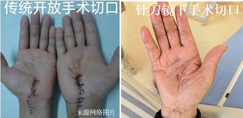 相较于传统手术,针刀镜腕管松解术优势有: