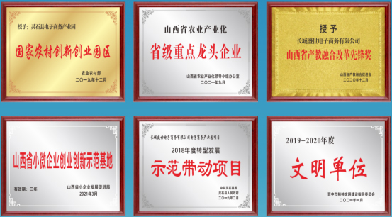 长城盛世电子商务有限公司,紧抓电商快速发展机遇,有效整合县域优质资源,加快完善县乡村三级农村物流体系,进一步加快数字技术、现代物流与农业发展深度融合,促进传统农业向数字农业转型,推动农业产业高质量发展。公司先后荣获“省级小微企业创业创新示范基地”、“省级产教融合型企业试点企业”、“农业产业化经营省级重点龙头企业”、“国家农村创新创业园区”、“2021年度农业产业化省级示范联合体”、“晋中市优秀基层团组织”“2022年度乡村振兴示范企业”等荣誉称号。