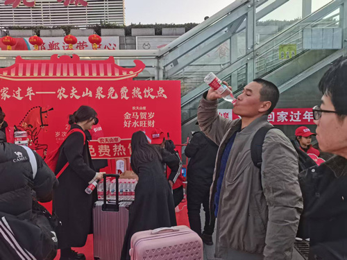 春运归途,为爱奔赴。农夫山泉开展春节暖心公益行动,在车站为返乡游子免费送上饮用水、暖心热饮与新春春联,以一杯温水暖身,一副春联传情,陪伴每一位旅人平安回家,让团圆之路更有温度。(记者 陈福明)