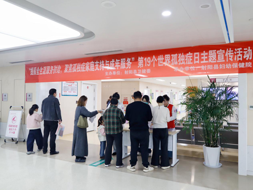 不仅如此,射阳妇幼保健院还积极联动全县各乡镇医疗机构同步开展宣传。各点位通过悬挂横幅、设立咨询台、发放资料等形式,让科普信息深入基层、广泛覆盖,在全社会营造理解、接纳、关爱孤独症群体的良好氛围。